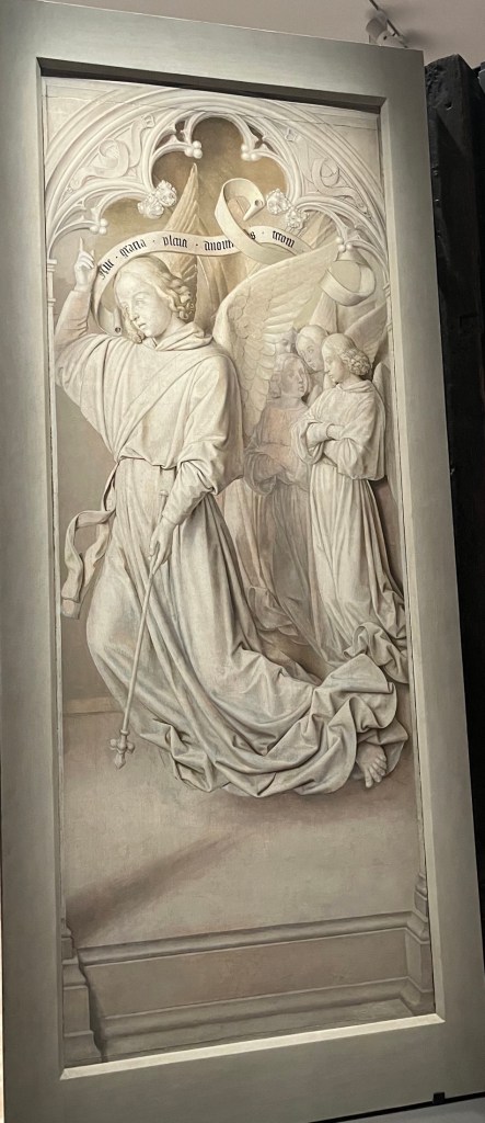 C’est au Louvre qu’est présenté ce triptyque de la Renaissance magnifiquement restauré. J’ai aimé les grisailles sur le dos du triptyque qui imitaient le rendu de la sculpture. Les fidèles ne voyaient que les volets fermés. À découvrir jusqu’au 31 août.