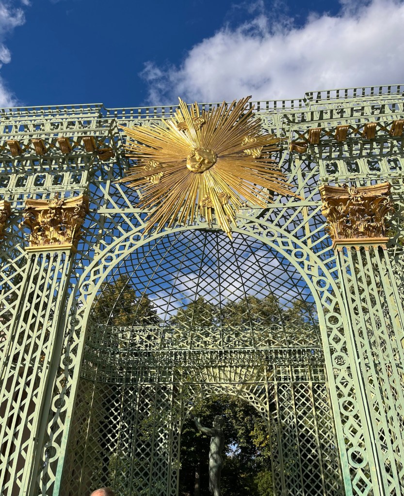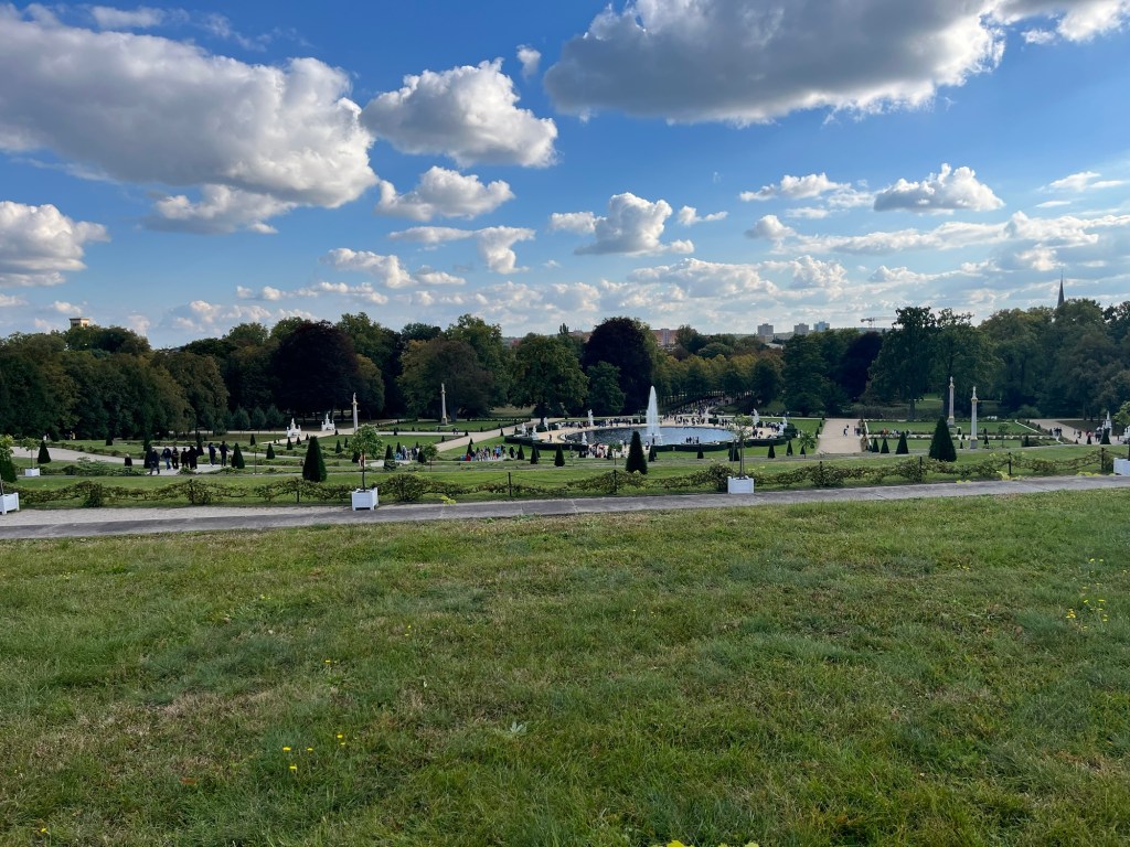 Frédéric II fait construire un château de quelques 400 pièces pour accueillir dignement le tsar Nicolas 1er et son épouse. Jardins, pagode, kiosque, temple s’ajoutent, au fil du temps et des empereurs, à la splendeur du lieu. À côté du l’exubérant baroque rococo de ce palais, Sans Souci apparaît dans son élégante simplicité voulue par Frédéric II. Absolument magnifique
