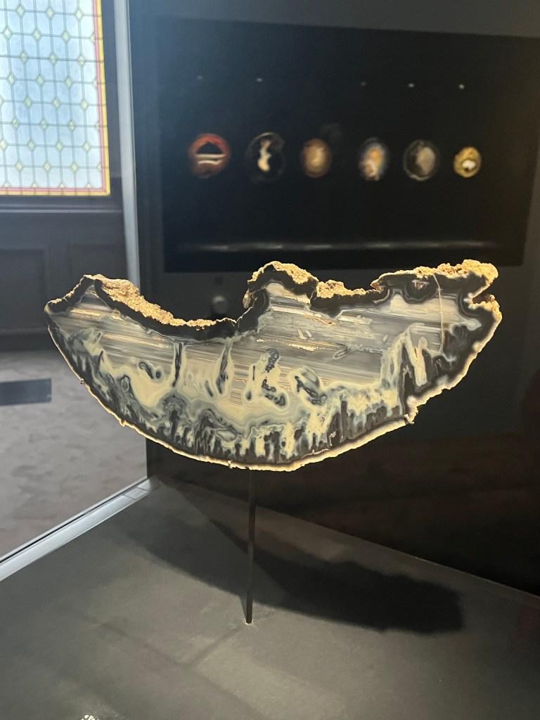 Cet érudit collectionneur a constitué entre 1952 et 1978 une collection remarquable et remarquée de plus mille minéraux tout en écrivant des textes prônant l’élévation de l’esprit vers le divin à travers la pierre. Les calcédoines : agathe, onyx, quartz, les calcaires à dendrites font rêver. Ne manquez pas de les découvrir à l’Ecole des Arts Joailliers jusqu’au 29 mars.